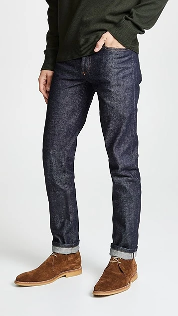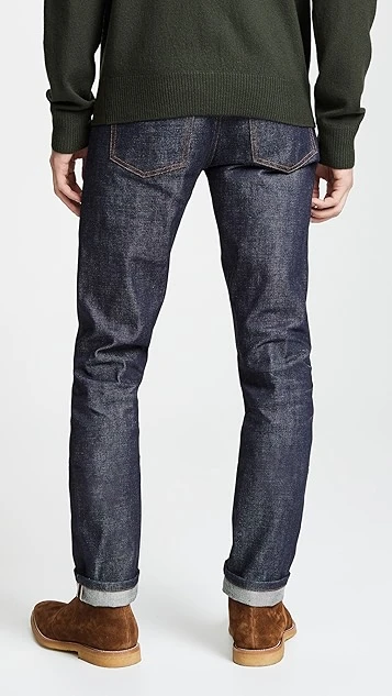 The Petit Standard jean from A.P.C. carries on the brand’s tradition of working with raw selvedge denim, but delivers it with a lower rise and a narrower waist, hip, and leg. The mid-weight denim is rigid, but not heavy. It will break in with wear and create unique fading and detailing.