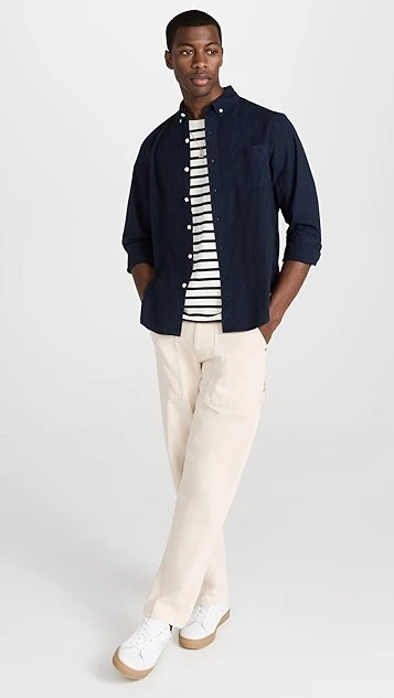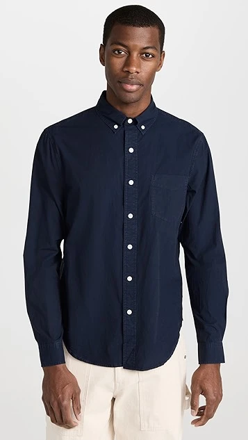 - Button-down collar and button placket