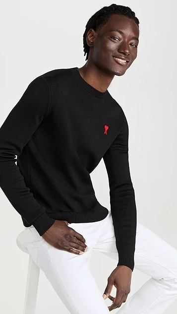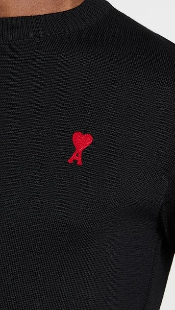 An understated AMI crew neck sweater in top-quality wool, accented with an embroidered logo at the breast.