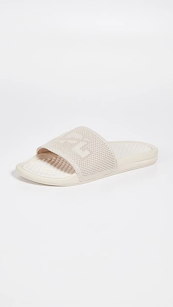 Crafted with the brand’s soft and flexible TechLoom knit, these APL: Athletic Propulsion Labs slides are a great post-workout option that prioritizes comfort. A cushioned Propelium midsole is covered with mesh that massages your feet with every step.
