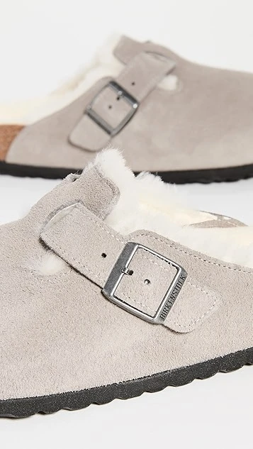 Keep out the winter chill with these suede Birkenstock sandals, which are lined with warm shearling and designed for maximum comfort.