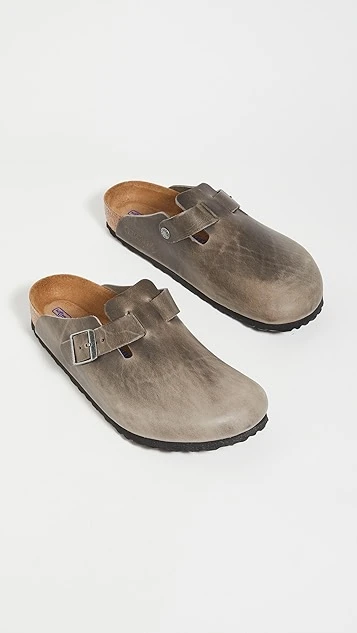 - Molded cork footbed with suede lining
