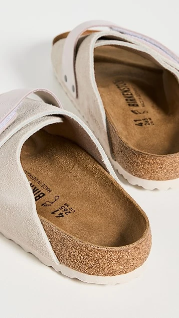 - Molded cork footbed with suede lining