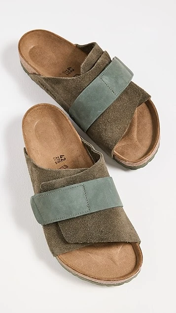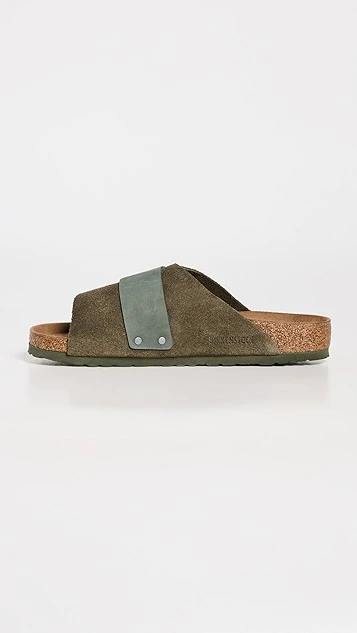- Molded cork footbed with suede lining