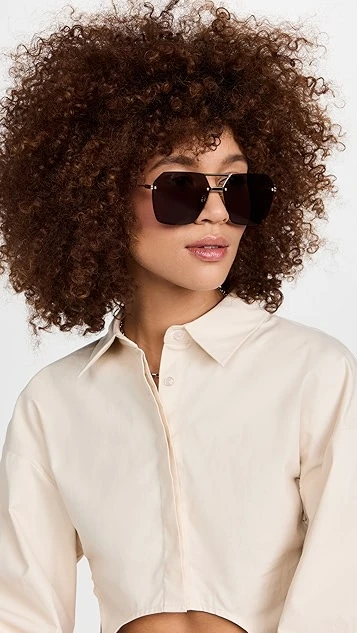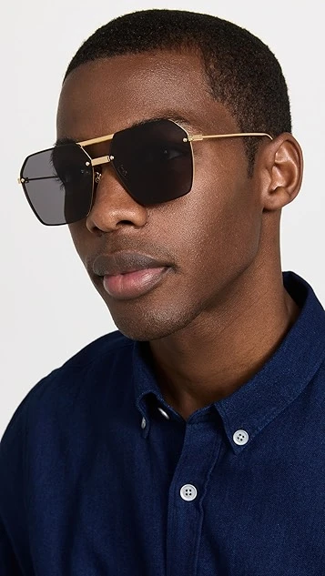 Add a little understated glamour to your look with these Bottega Veneta aviator sunglasses, which feature subtly angular frames and gleaming, gold-tone arms.