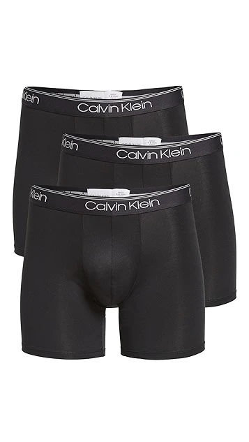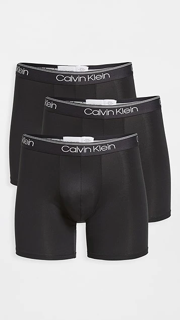 Smooth, microfiber jersey composes these 3 pairs of extra-comfortable Calvin Klein Underwear boxer briefs.