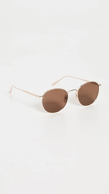 A no-fuss pair of Chimi sunglasses, featuring round frames, dark lenses, and a bright gold-tone sheen.