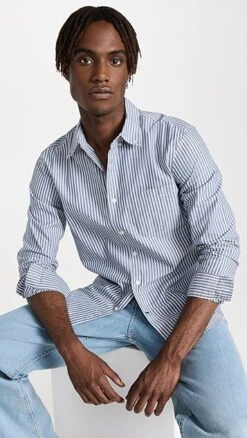 - Button-down collar and button placket