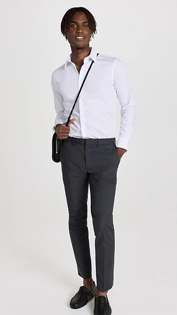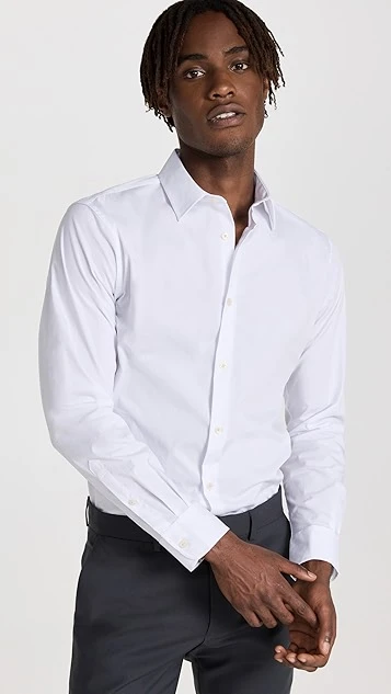 - Point collar and button placket