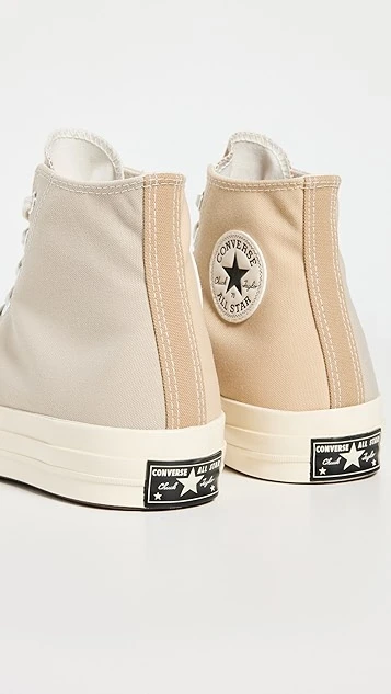 Three earth-tone shades of canvas compose these timeless Chuck Taylor All Star high top sneakers.