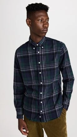 - Button-down collar and button placket