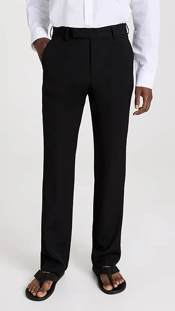 - Hook-and-eye closures at waist, zip fly
