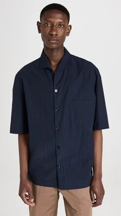 - Fabric: Lightweight, non-stretch crinkled shirting