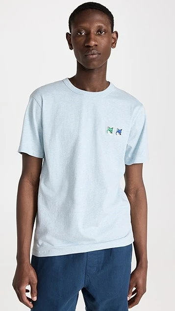 Two embroidered fox patches detail this simple Maison Kitsune T-shirt, another reliably well-built basic for your weekend wardrobe.