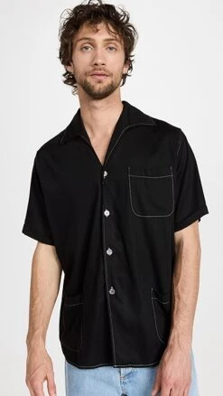 - Camp collar and button placket