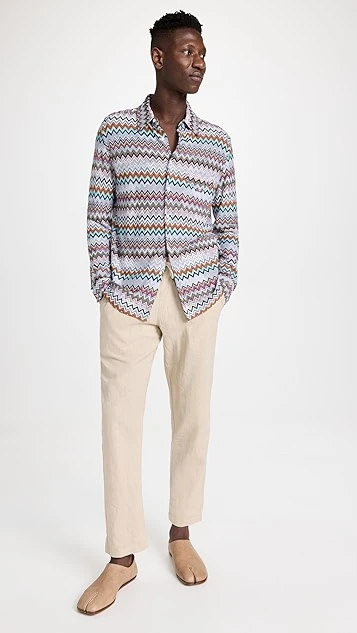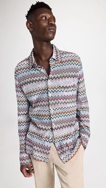 - Point collar and button placket