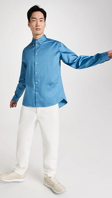 - Button-down collar and button placket