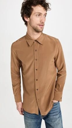 - Collared neckline and button placket