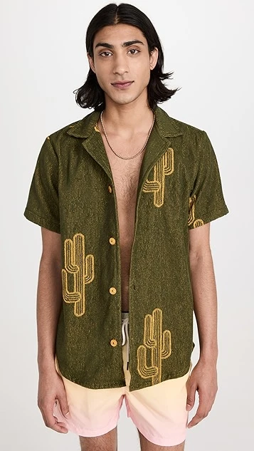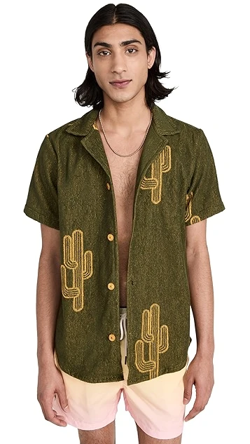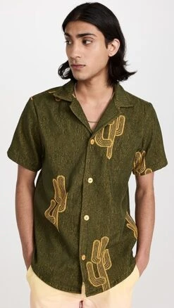 - Camp collar and short sleeves