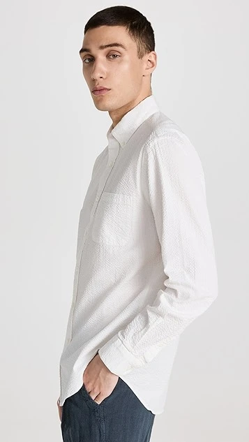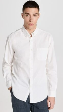 Lightweight, texture-rich fabric composes this white Portuguese Flannel button-down shirt, an understated pick that’ll work for multiple seasons.
