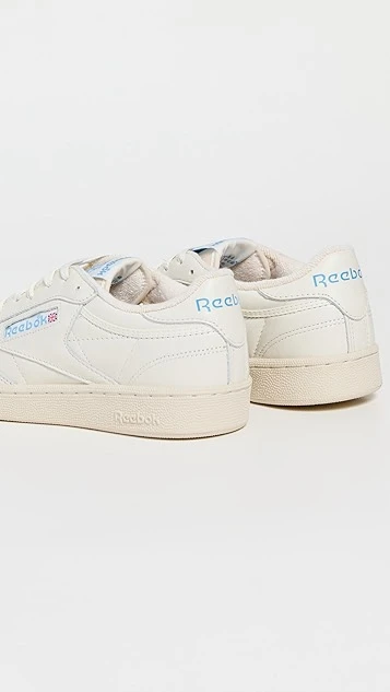 Built for comfort, these classic Reebok sneakers are crafted from sleek, light-colored leather and have a cushioned foam midsole.