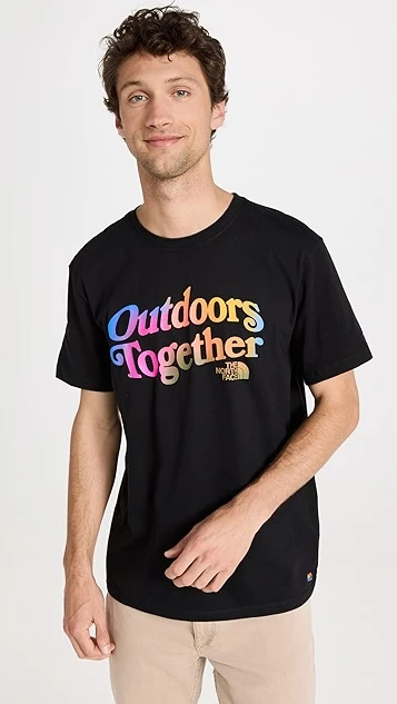 - Rainbow ‘Outdoors Together’ print at front