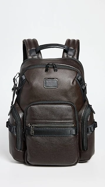 - Main zip compartment with organizer pouches, zip, and patch pockets